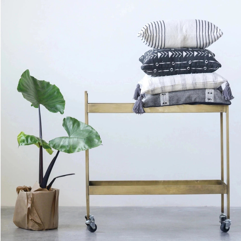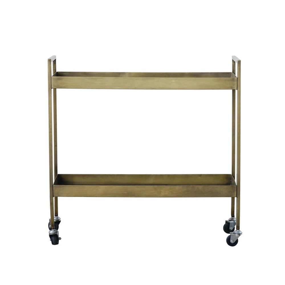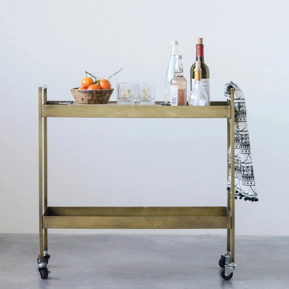 Mango Wood 2-Tier Bar Cart on Casters w/ Marble Shelves -