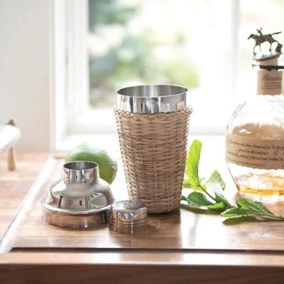 Stainless Steel Cocktail Shaker with Rattan Sleeve -