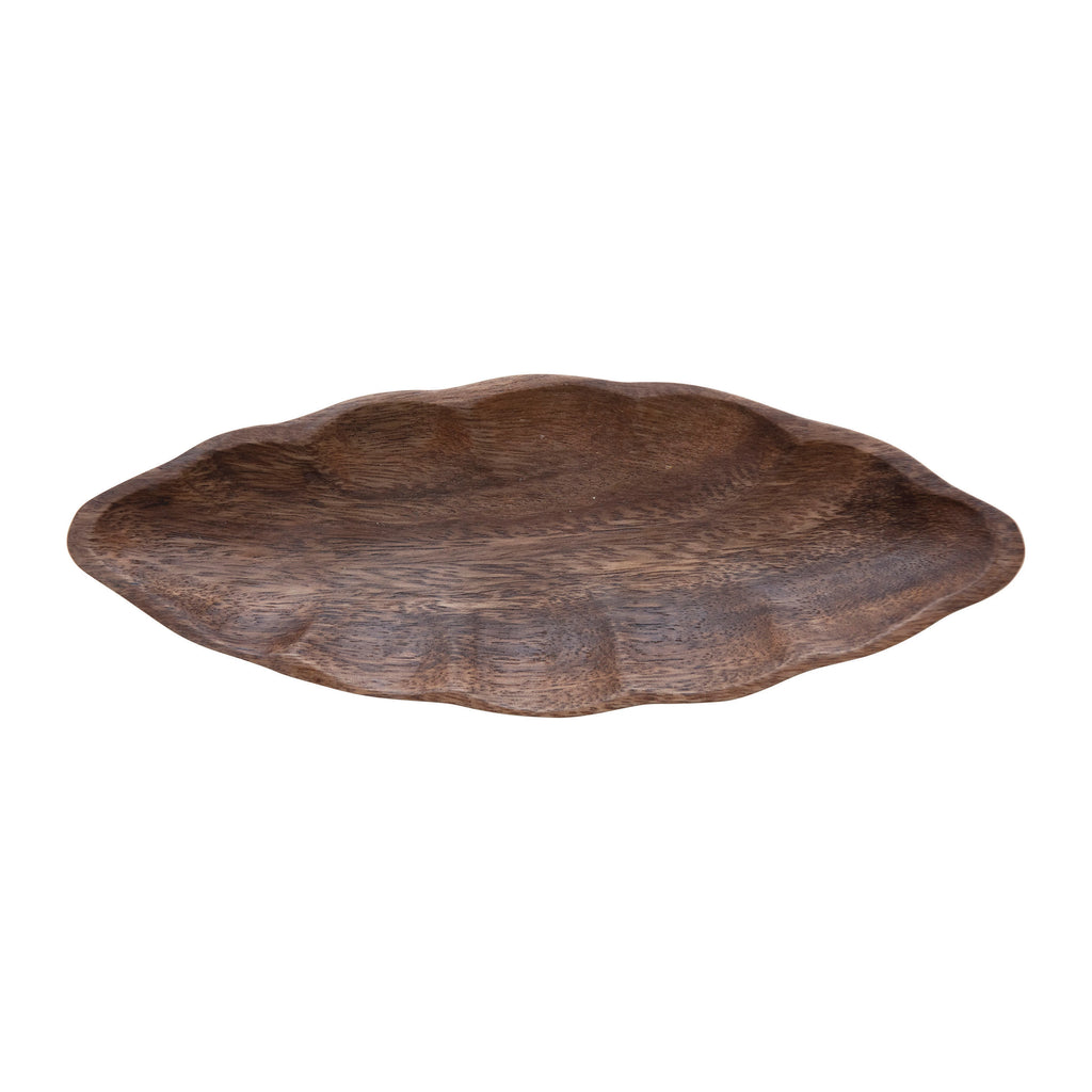 Hand-Carved Acacia Wood Leaf Shaped Dish