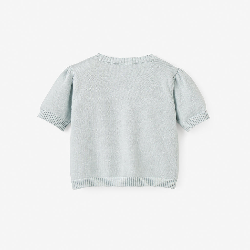 This hand-embroidered cardigan is simply stunning! Elegantly finished with pearl buttons and ribbed trim, it is the perfect layering piece to the sea magic collection.