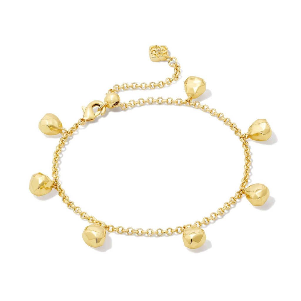 The Gabby Delicate Chain Bracelet in Gold features small metal drops on a delicate chain that bring a subtle statement to any look. Add it to your bracelet stack for some instant texture and movement.