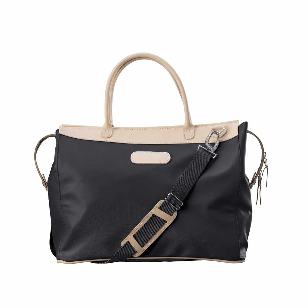 - Natural Leather handles and a detachable webbing crossbody strap