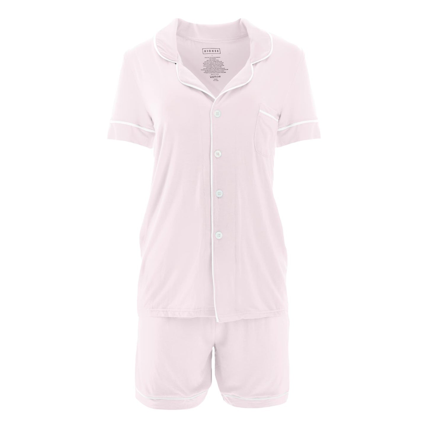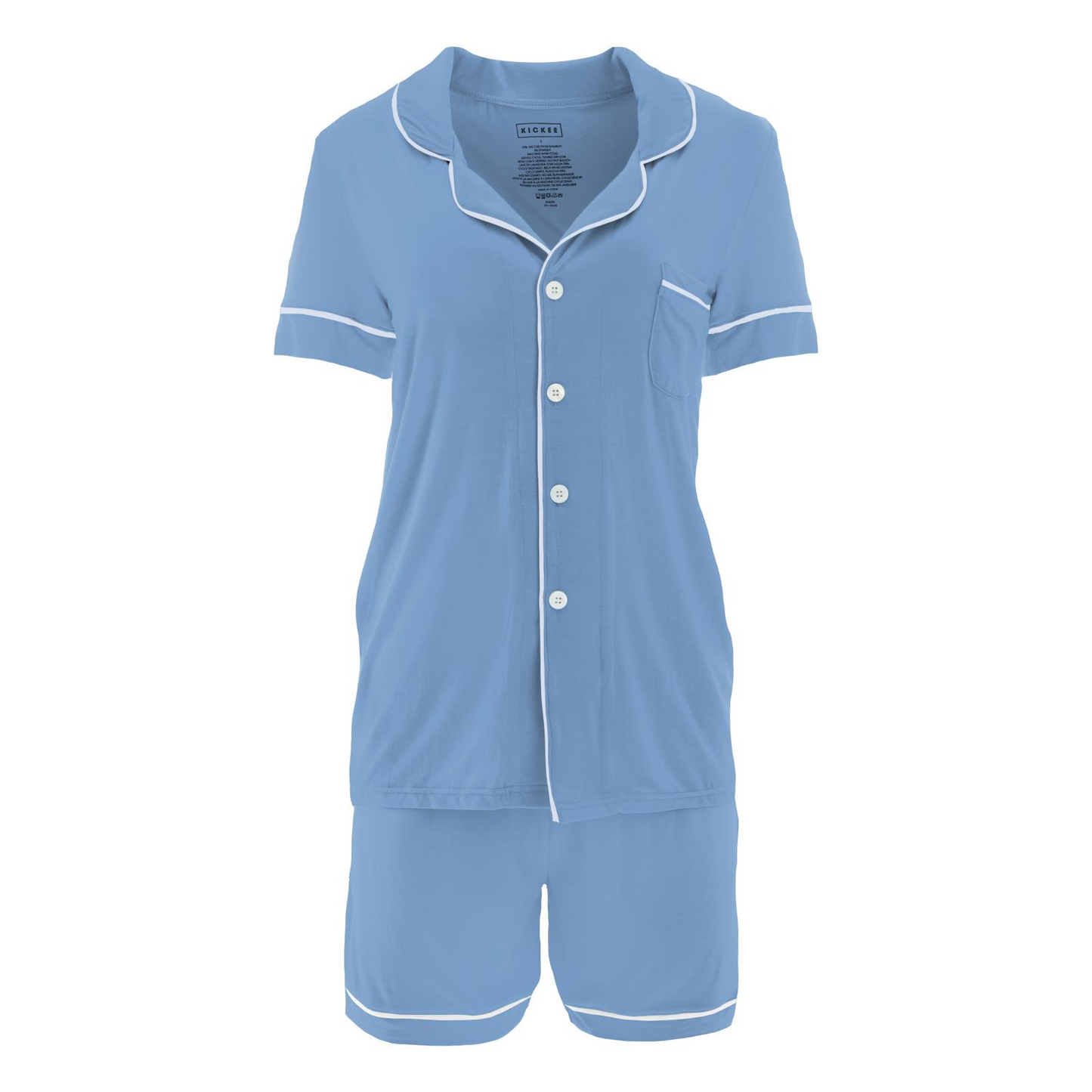 Women's Short Sleeve Collared Pajama Set with Shorts